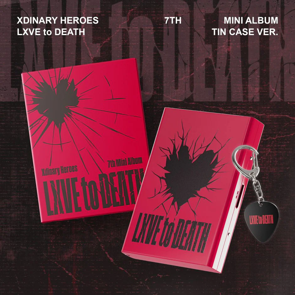 'LXVE to DEATH' to siódmy mini-album zespołu XDINARY HEROES, którego premiera odbyła się 24 października 2025 roku. Wersja Tin Case ver. oferuje pełną oprawę wizualną i dodatki kolekcjonerskie, które zadowolą każdego fana.